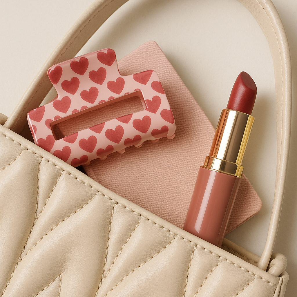 💗 Clawing for Love – Pink Heart Print Hair Clip
