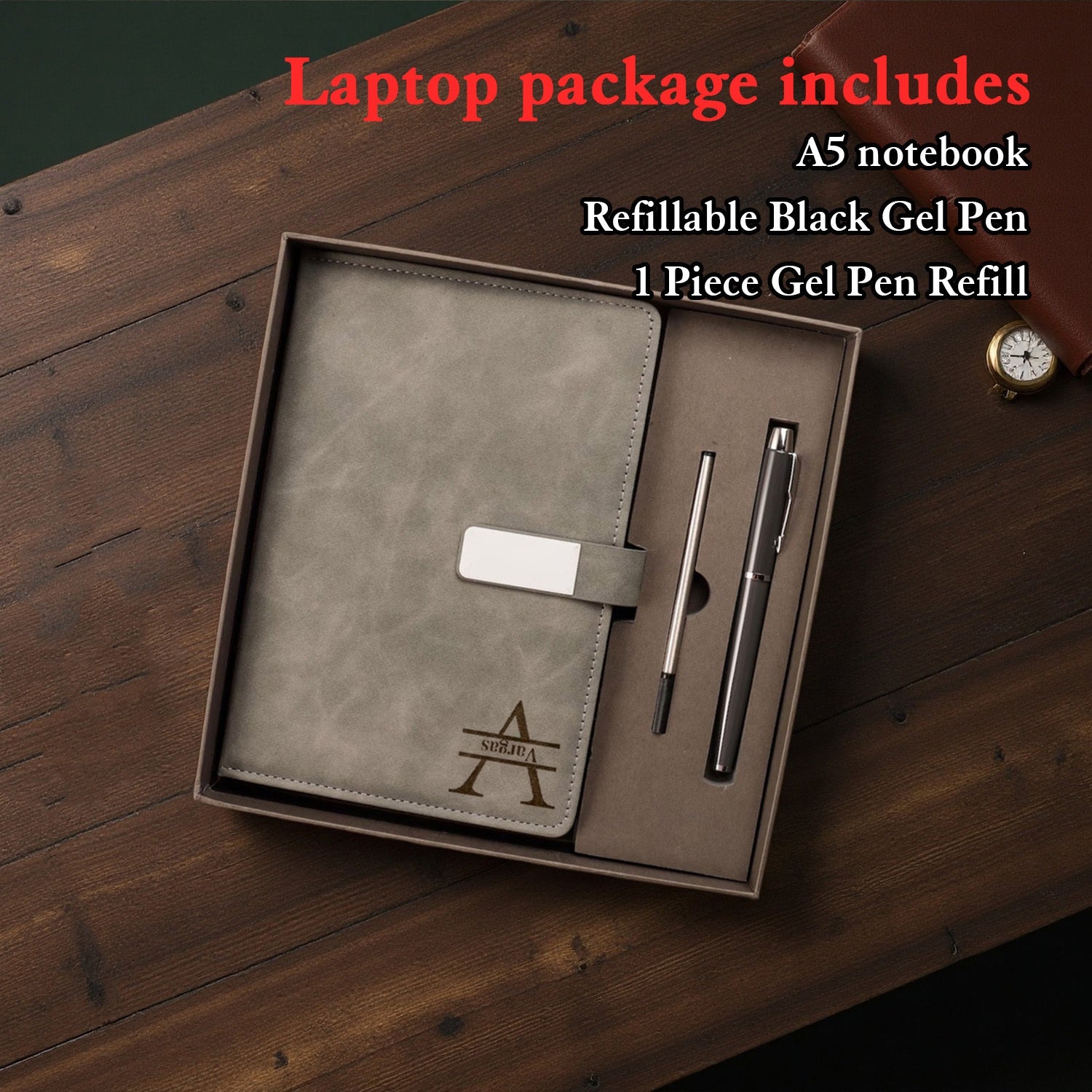 Your next go-to for productivity meets luxury. This A5 notebook features a soft PU vintage-style cover with a clean embossed finish and includes a matching engraved pen. Ideal for journaling, school, gifting, or just treating yourself to a little organization upgrade.