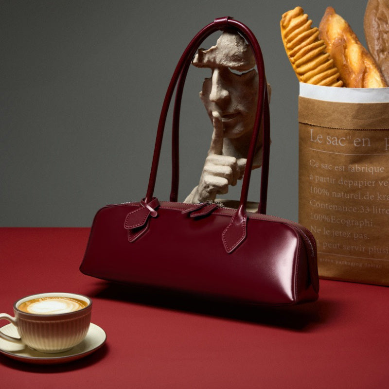 The kind of bag that turns heads. With a sleek silhouette, rich cherry or chocolate tones, and golden hardware — it’s a timeless piece that balances luxury and function.